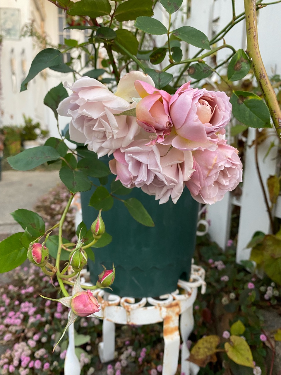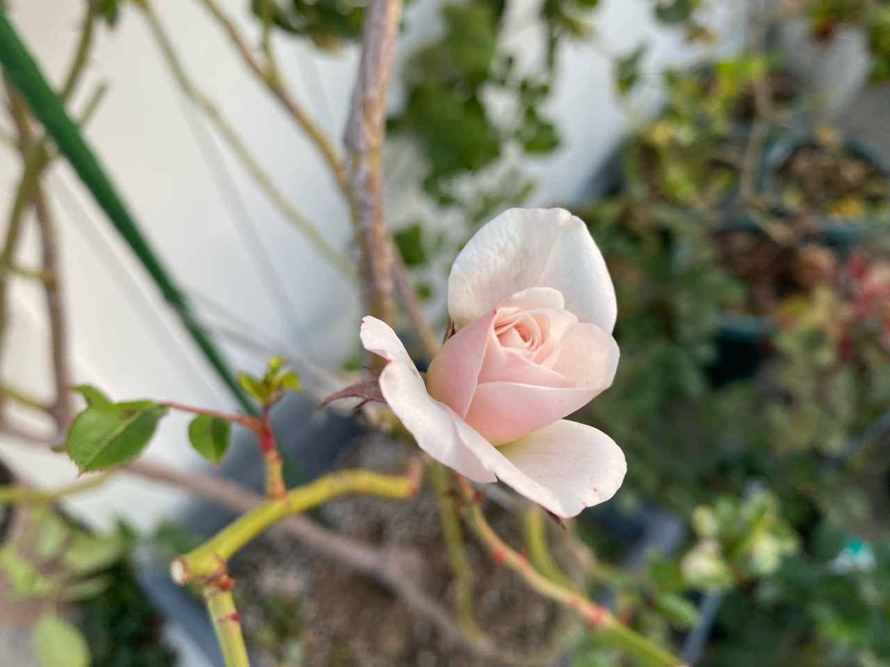 今日、会社のバラを誘引しました♬
