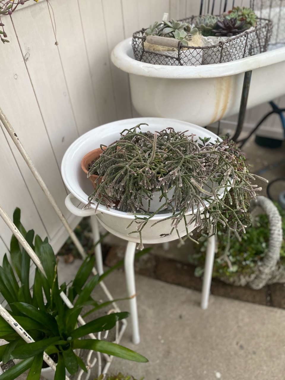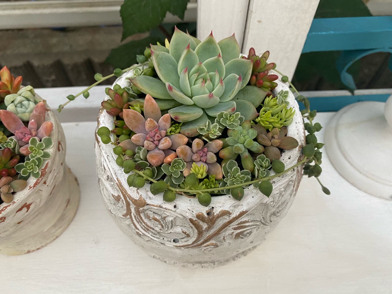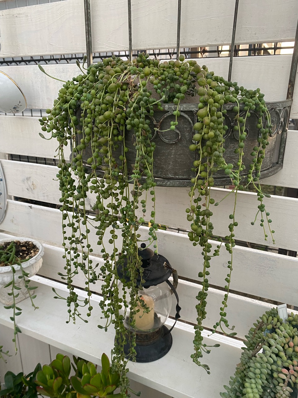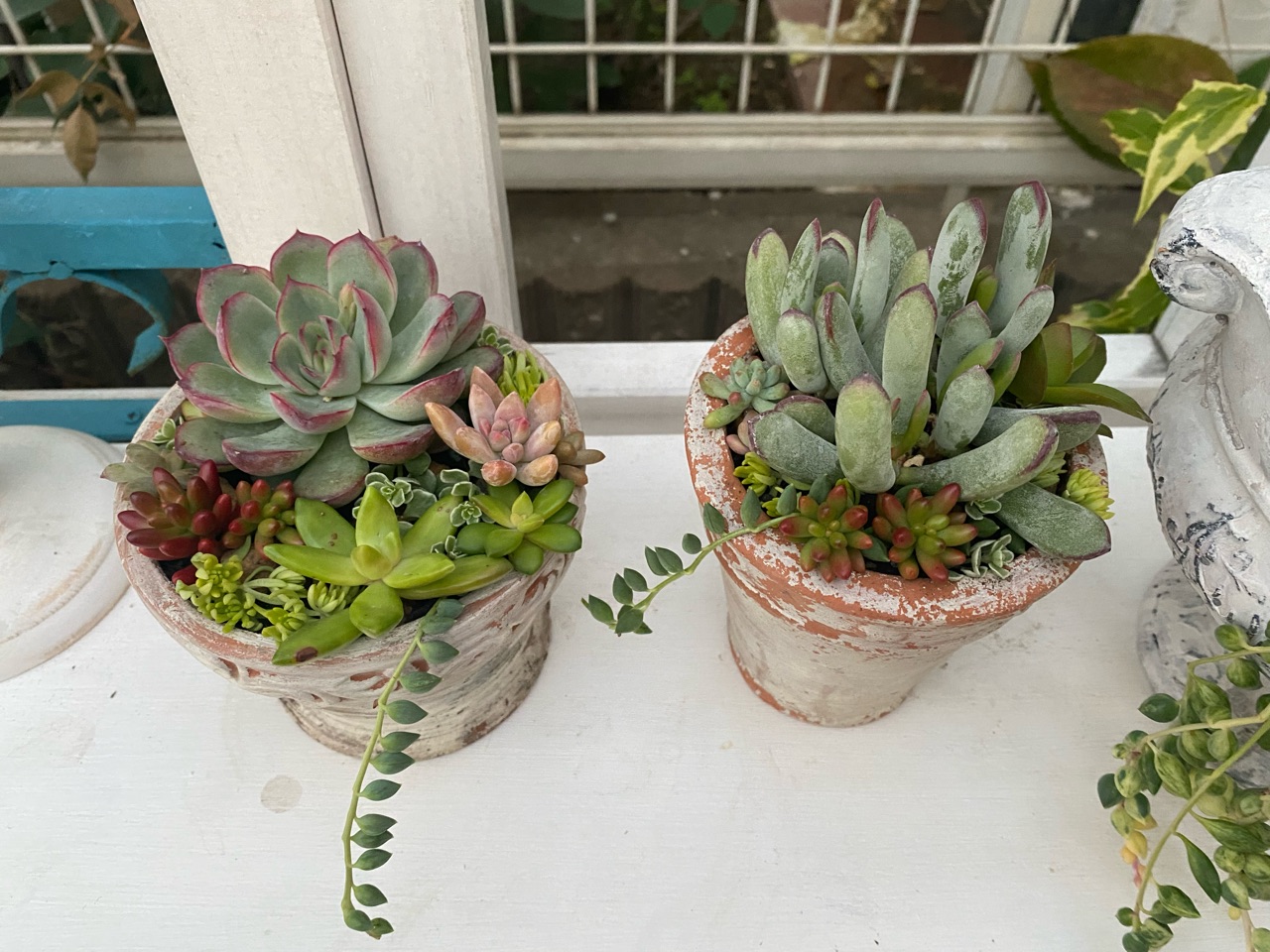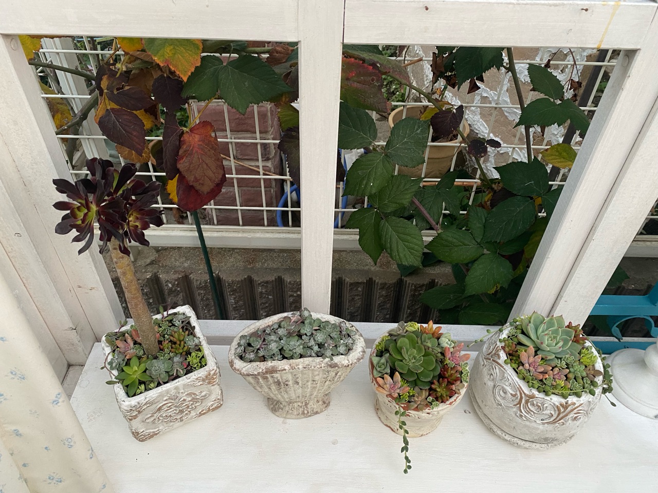 このガーデンハウスに多肉が馴染んでくれるだろうかと飾る棚を探していました