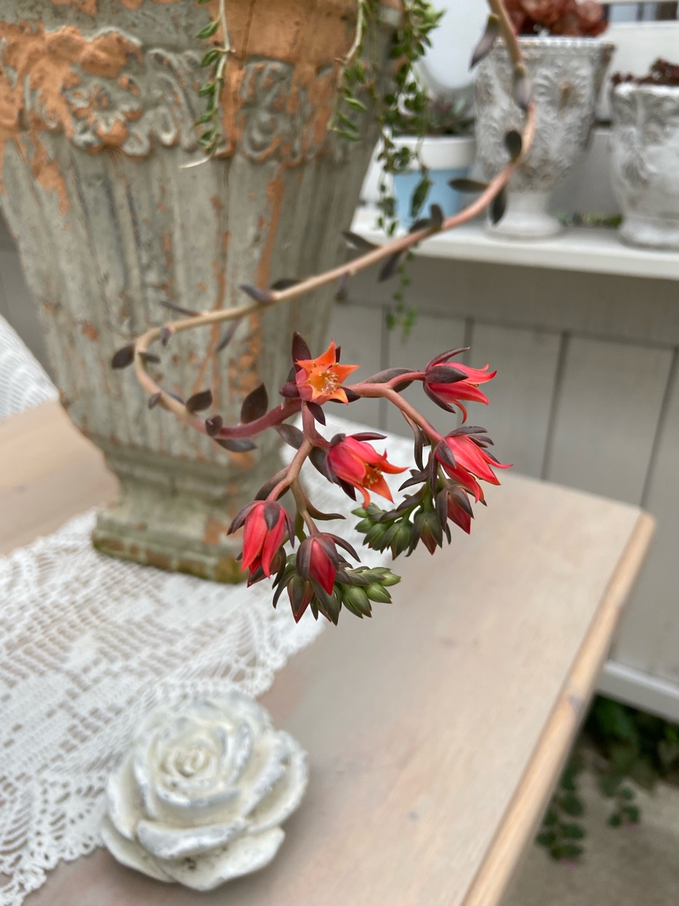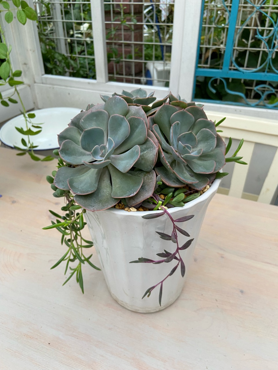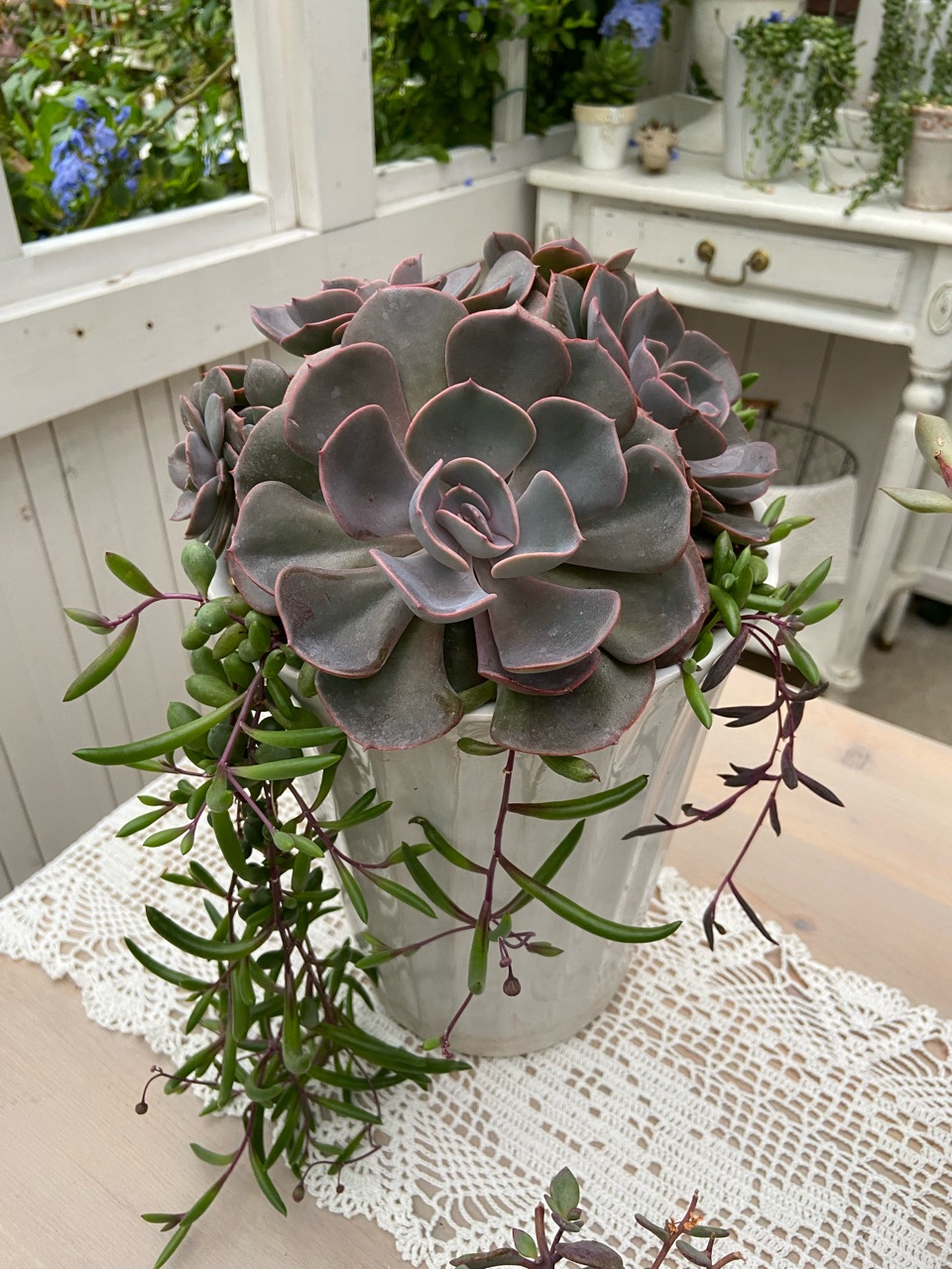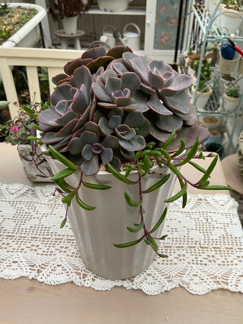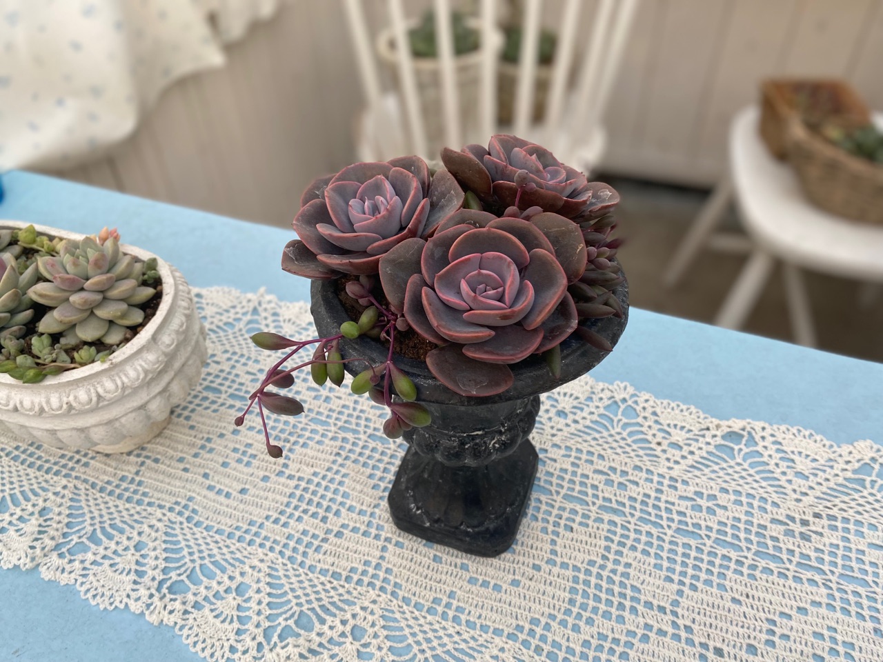 日光浴中の多肉たちを