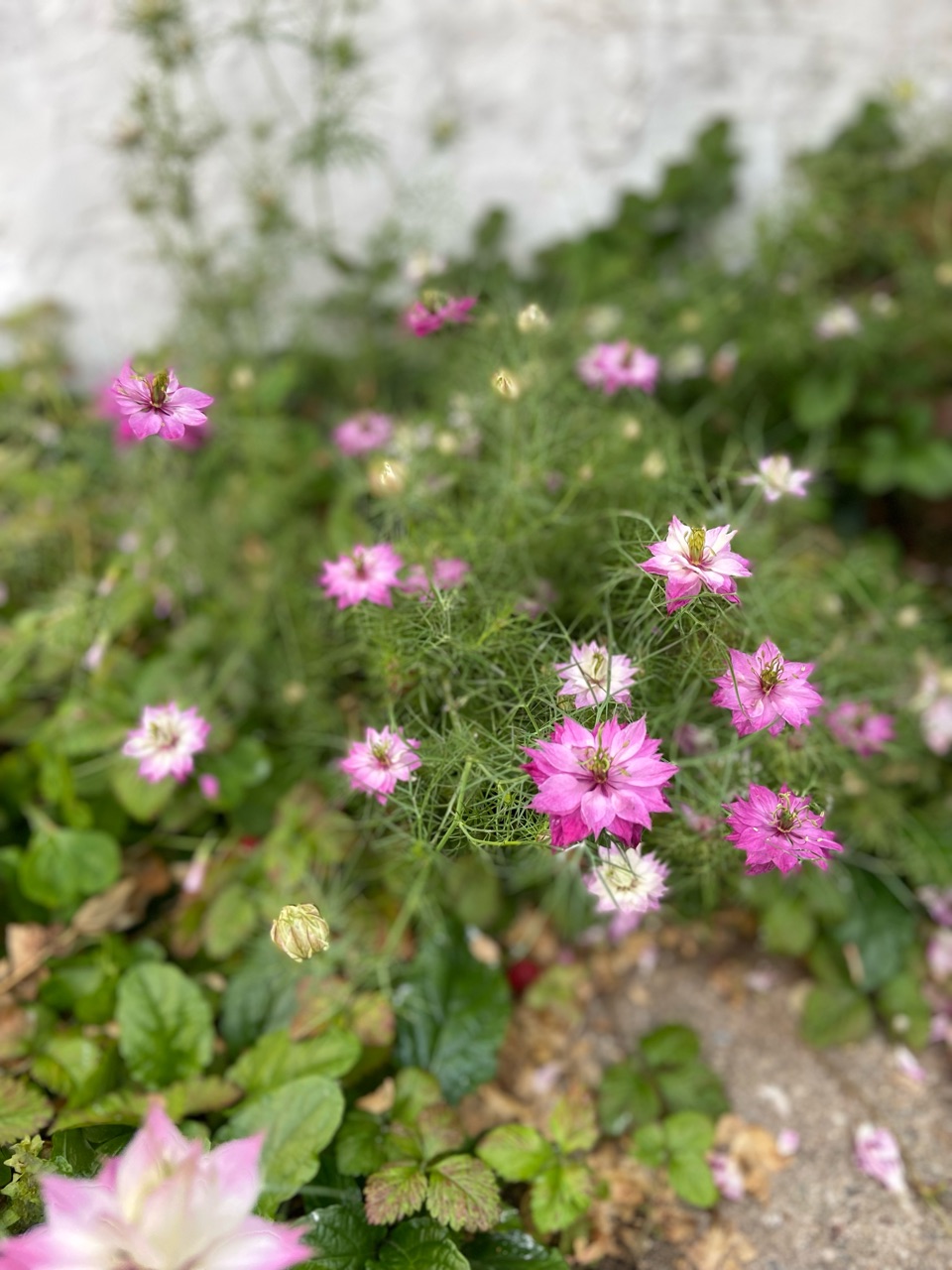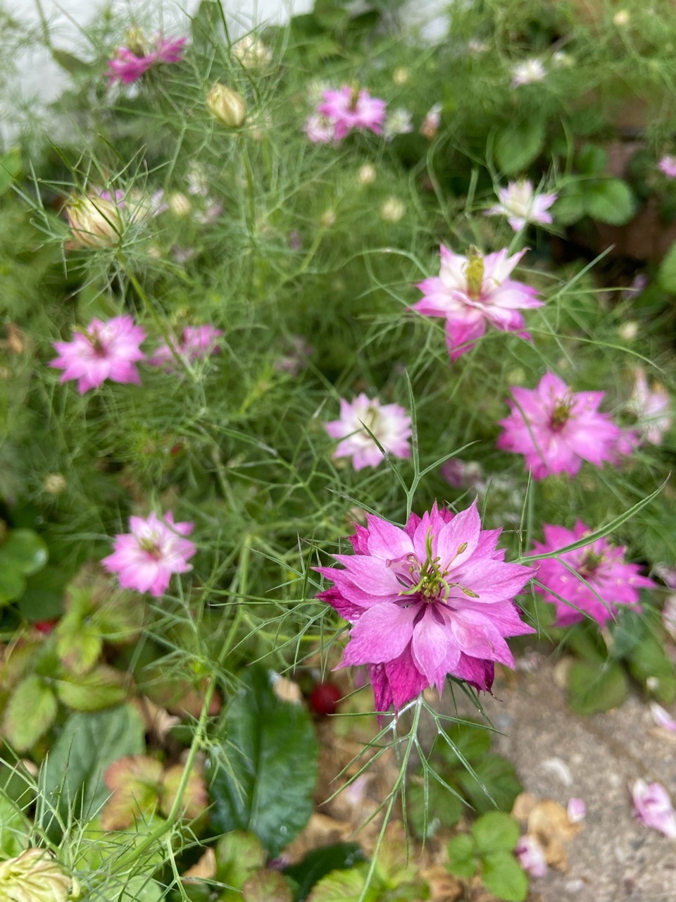 零れ種で咲いたピンクのニゲラ