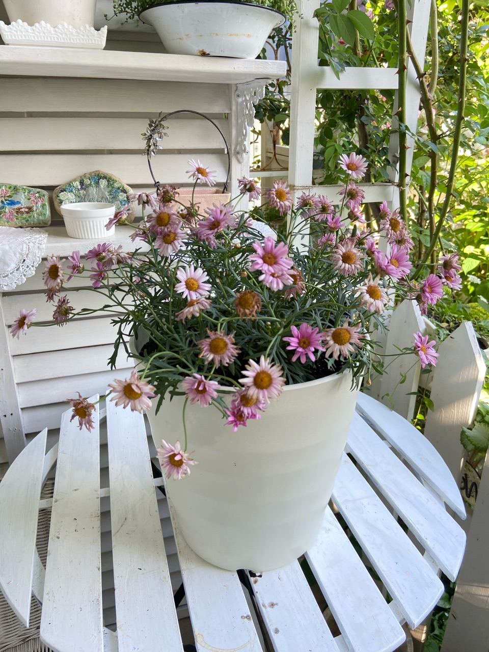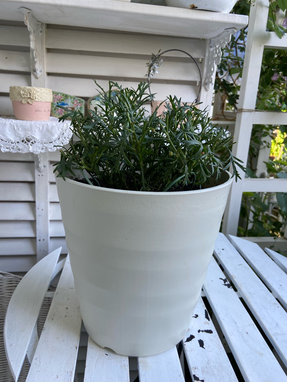 玄関ポーチで植え替えをしていて