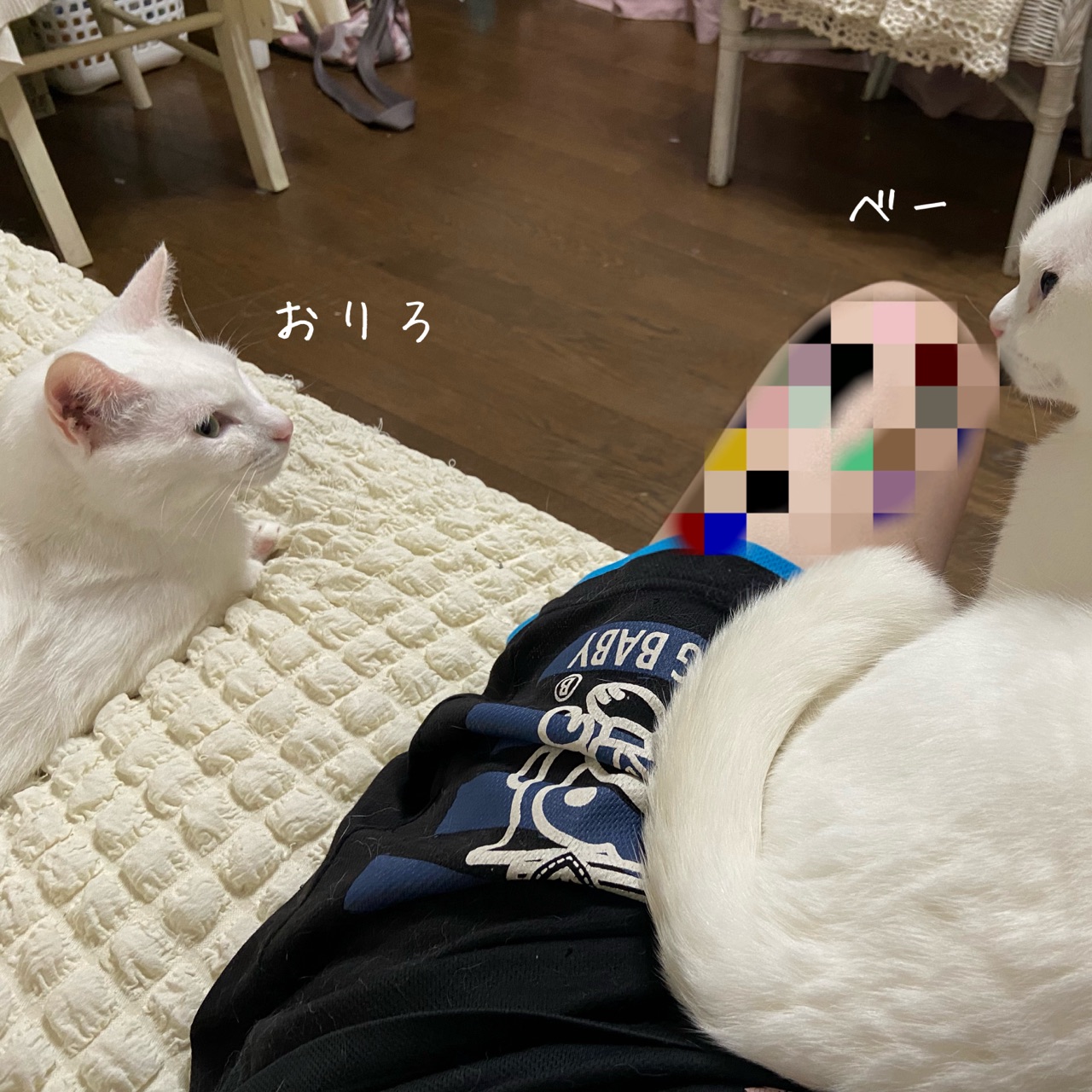 膝の上の取り合いは人の子も猫も同じですね(*¯艸¯)